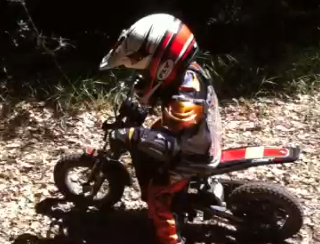 Dad looked at the salesman and said, “You don’t know my son Mister. He is a better rider at 2 than I am at 47. Davy needs to try this bike out, can you take it out back to the track for us?”